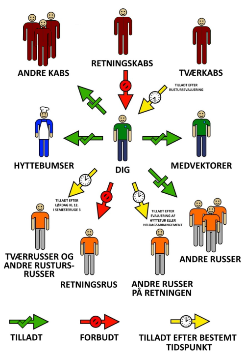- Vectors are responsible for arranging a minimum of two social events for the entire studyline russes during the russes' 1st semester, where at least one event does not involve drinking. The vectors must also aim to participate in these events. Within the studyline, at least one professional event must be held, as well as an all-day event with the purpose of networking, where a cabin trip can include both.